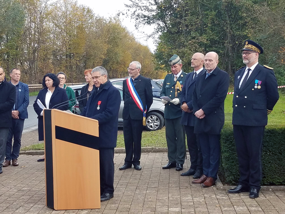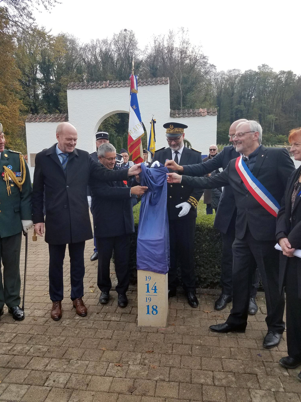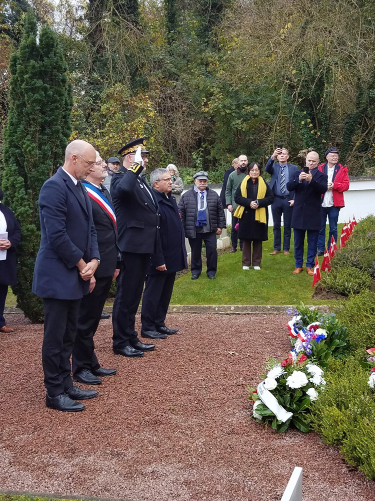 Inauguration de la borne Aisne Terre de Mémoire au cimetière danois de Braine le 11 novembre 2024 à l'occasion du premier anniversaire de l'inscription du cimetière sur la liste du Patrimoine mondial de l'UNESCO.