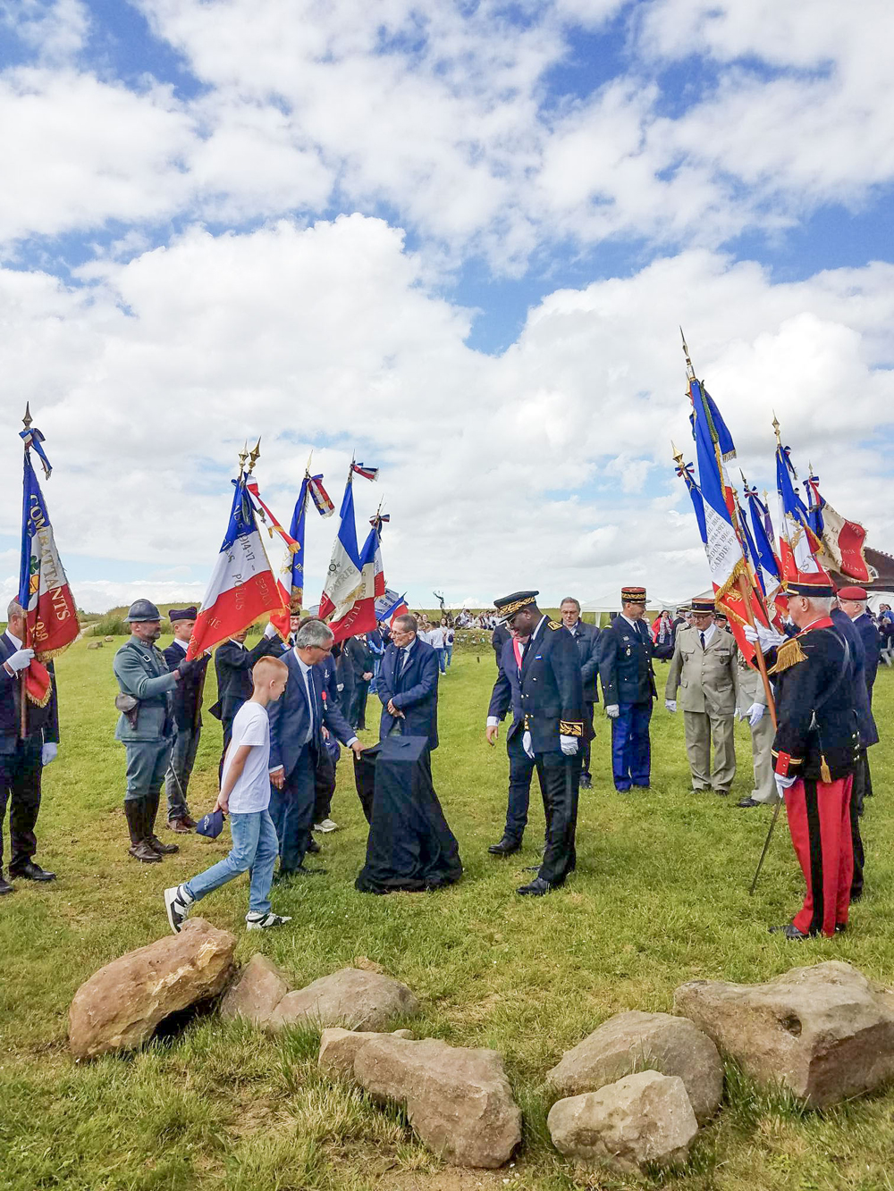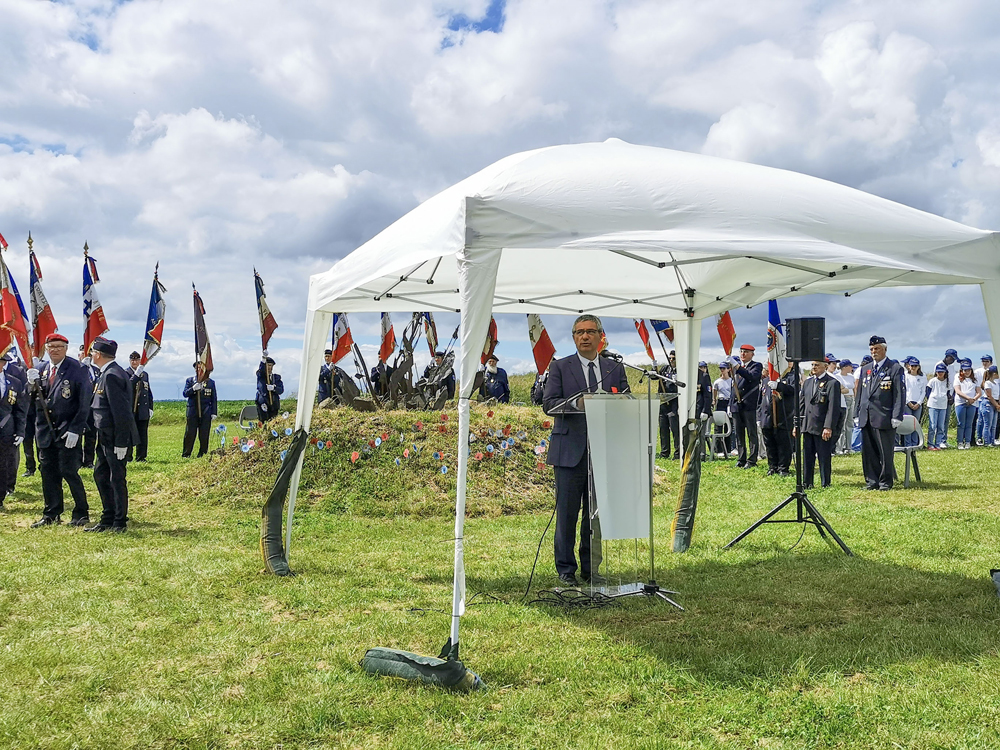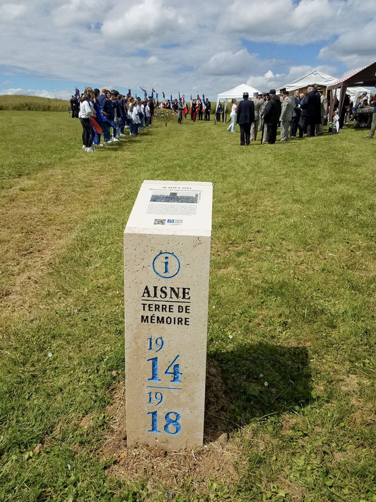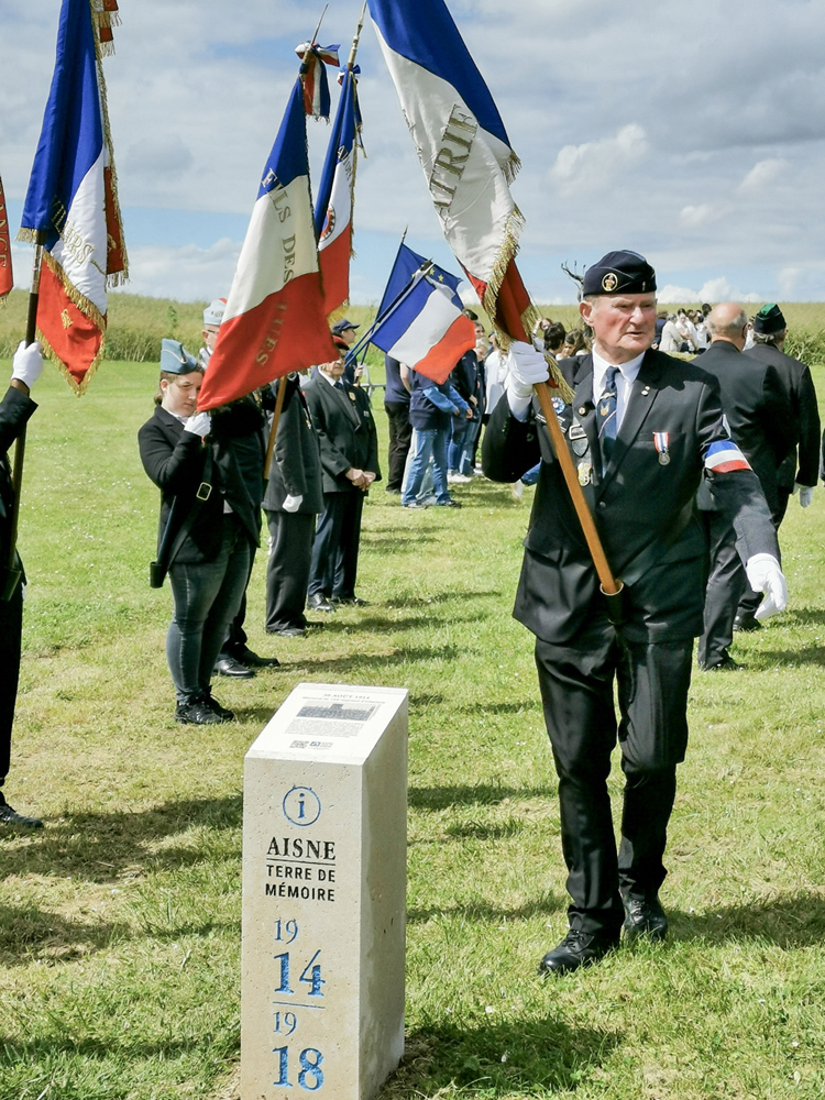 Inauguration de la borne Aisne Terre de Mémoire le 14 juin 2024 à Ribemont, à l’occasion du 10e anniversaire du projet « L’Œil du Tigre ».