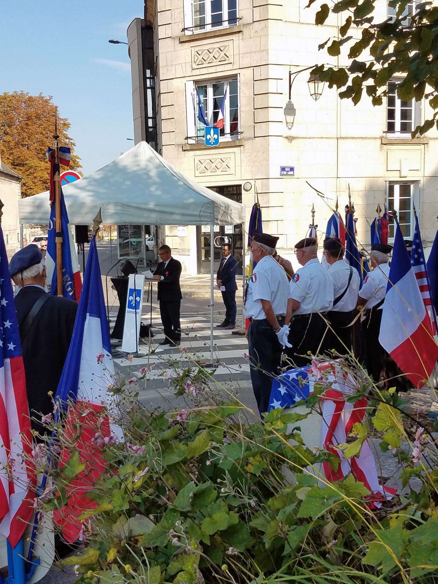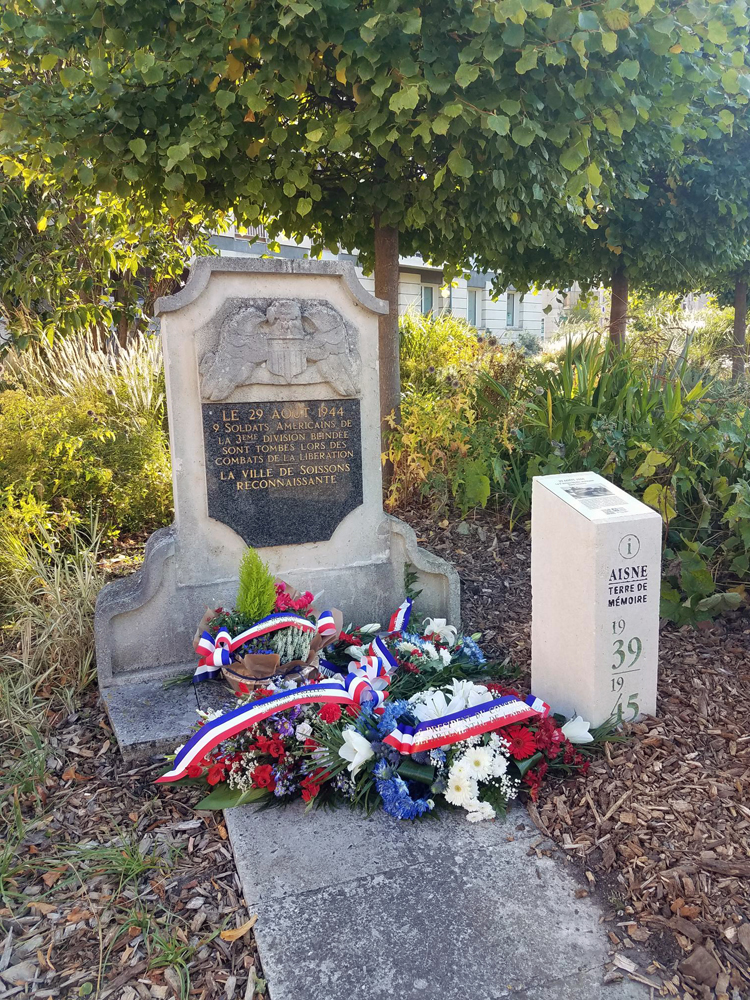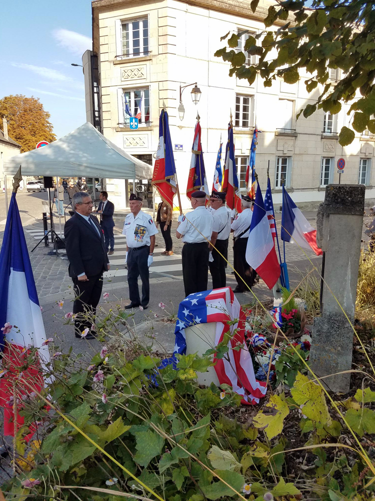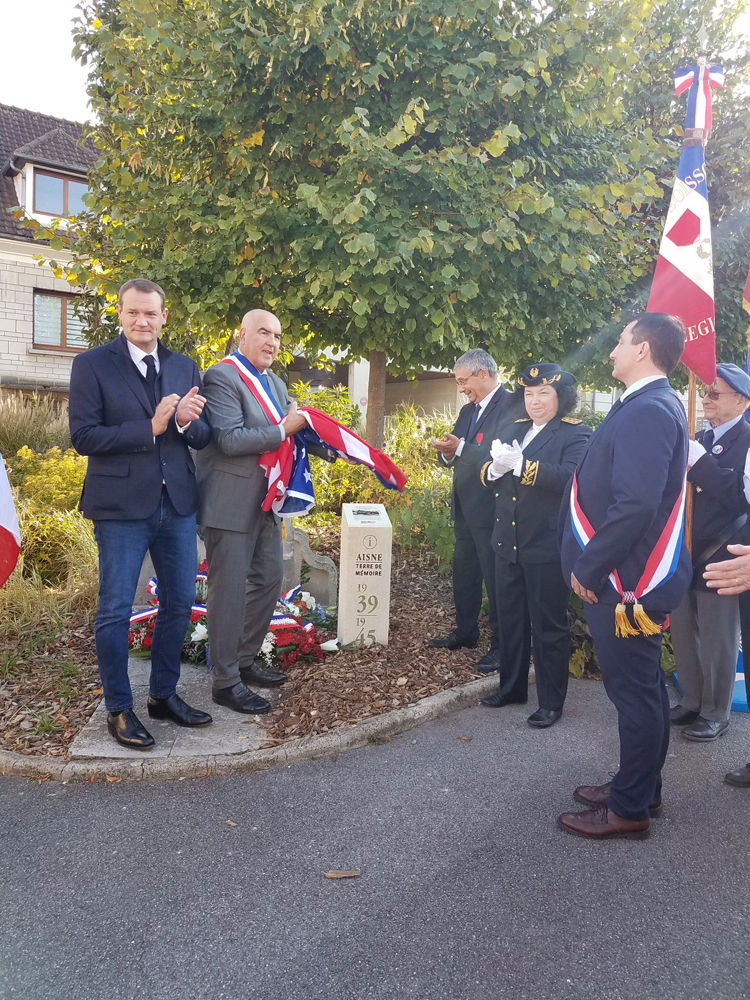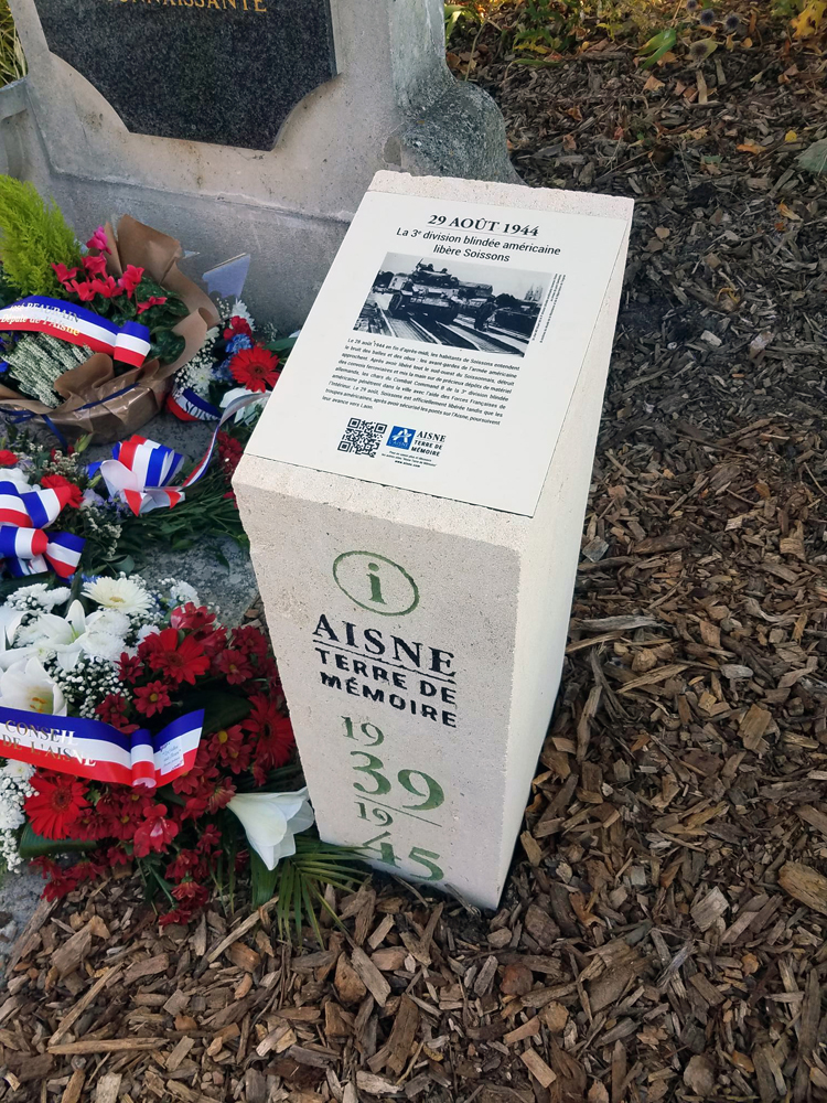 Inauguration de la borne Aisne Terre de Mémoire le 20 septembre 2024 à Soissons, à la stèle en l'honneur des soldats de la 3rd Armored Division.