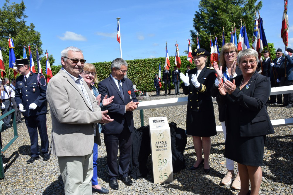 Inauguration de la borne Aisne Terre de mémoire à Saint-Algis