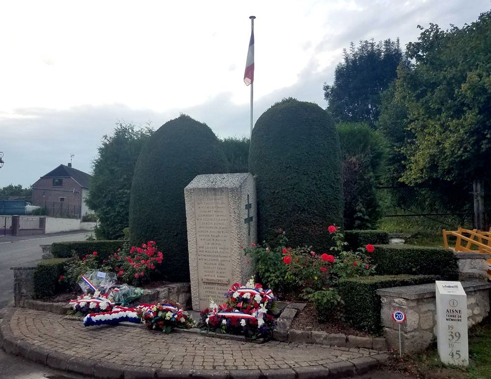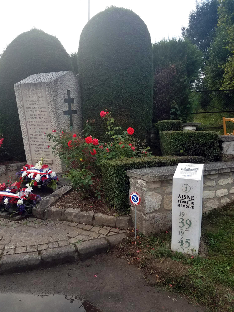 Inauguration de la borne Aisne Terre de Mémoire qui met en lumière l'histoire des victimes du 30 août 1944 et le monument des massacrés de Tavaux.