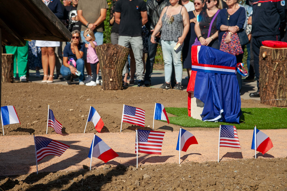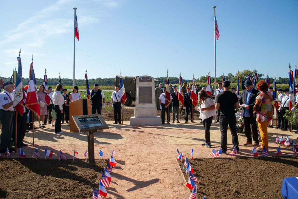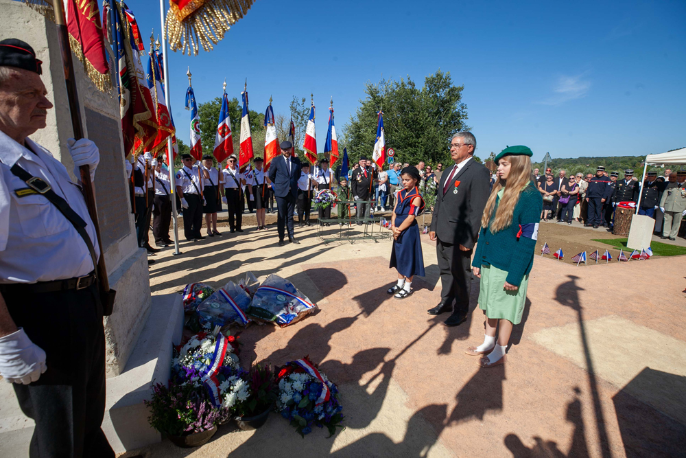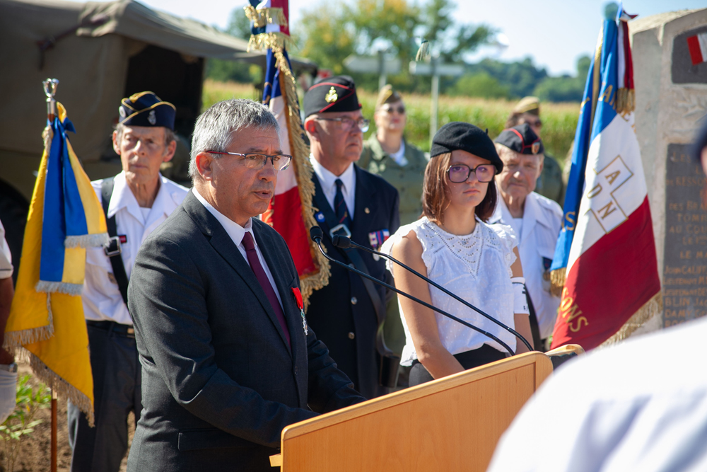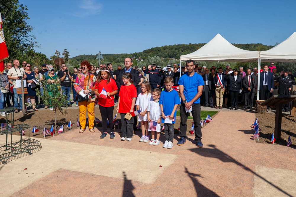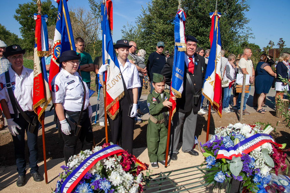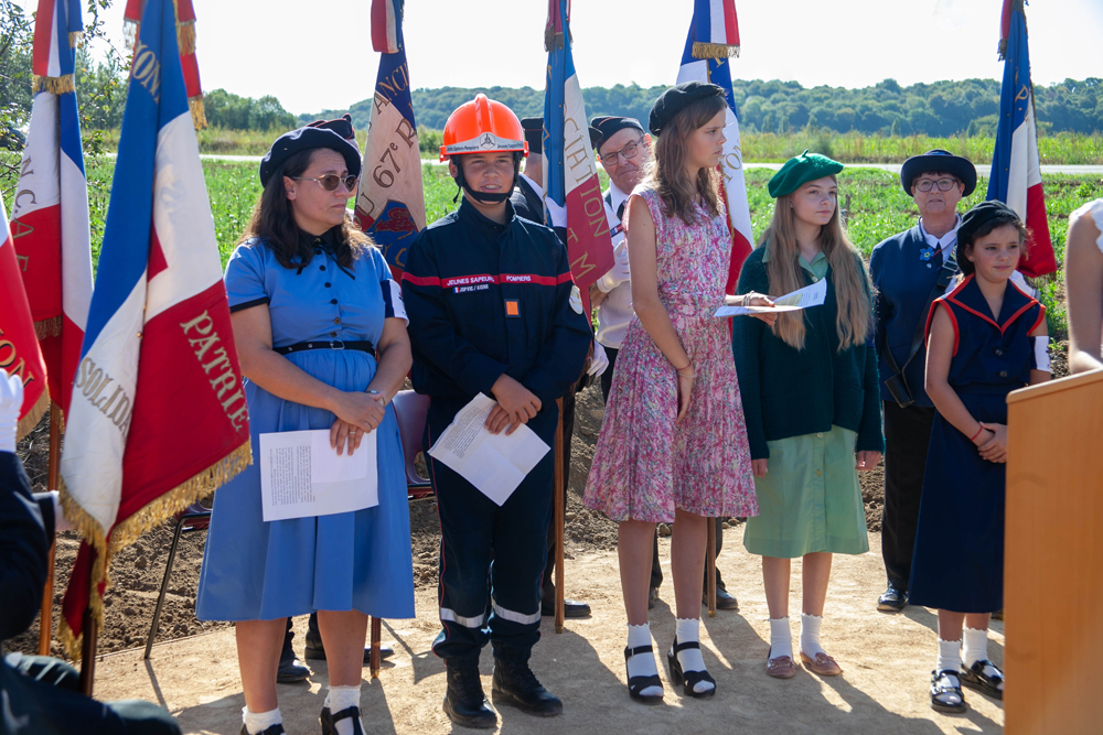 Inauguration de la borne Aisne Terre de Mémoire le 7 septembre 2025 à Ressons-le-Long, au monument en souvenir des victimes du massacre du Bois des Châssis tombés pour la France au cours de la Libération.