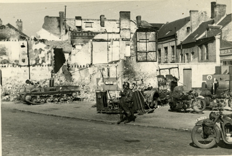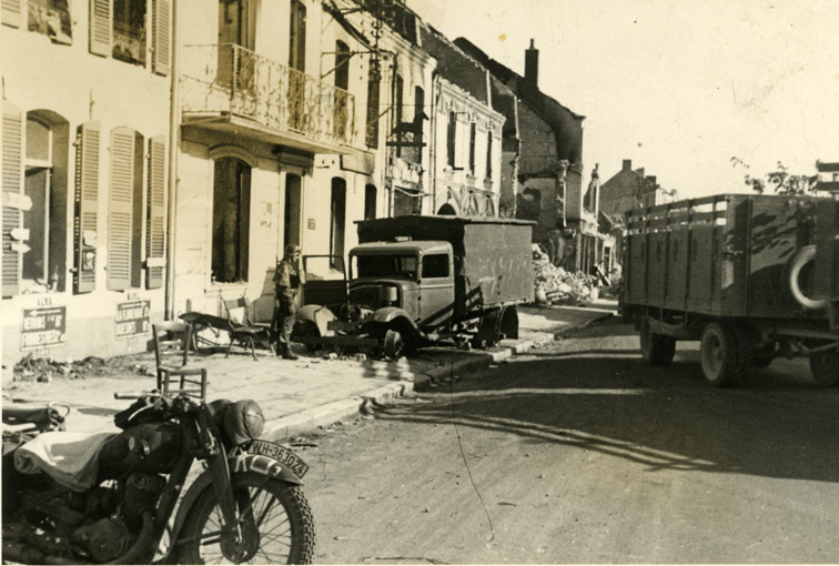 Véhicules et soldats allemands dans une rue de Guise, mai-juin 1940 ©Arch. dép. de l’Aisne 2 Fi 349